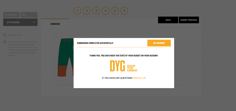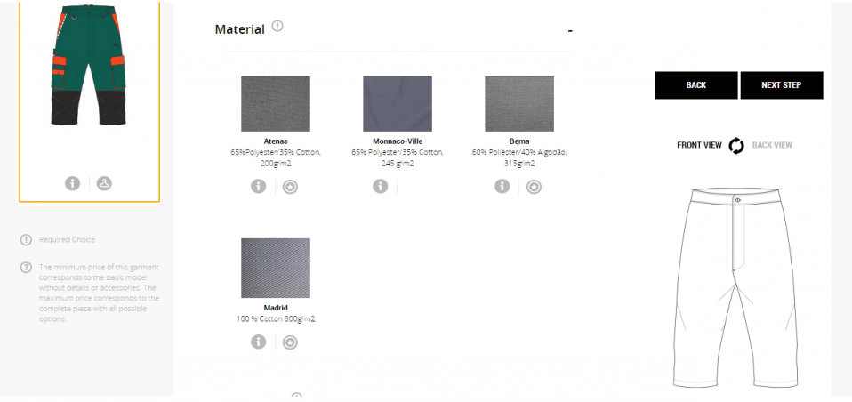 O projeto Design Your Garment tem o propósito de apoiar os nossos clientes na personalização de uniformes de alta qualidade através desta plataforma eletrónica. O configurador permite selecionar os produtos, as formas, os modelos, as cores e os tecidos para cada peça.