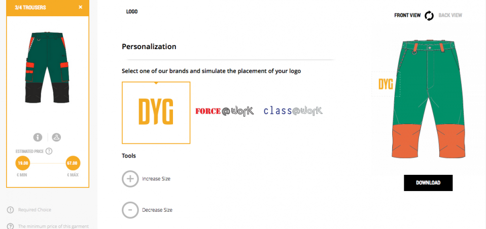Criámos esta página para que os nossos clientes e futuros clientes possam iniciar uma experiência inovadora. A partir de agora poderá configurar o seu vestuário Industrial, Alta-visibilidade, Multi-Normas e Clássico Corporativo de uma forma mais prática e objetiva. Configurar as suas peças nunca foi tão fácil, crie a sua coleção com a ajuda da marca DYG, poderá ver as suas peças, itens e pintar de acordo com as suas como expectativas.